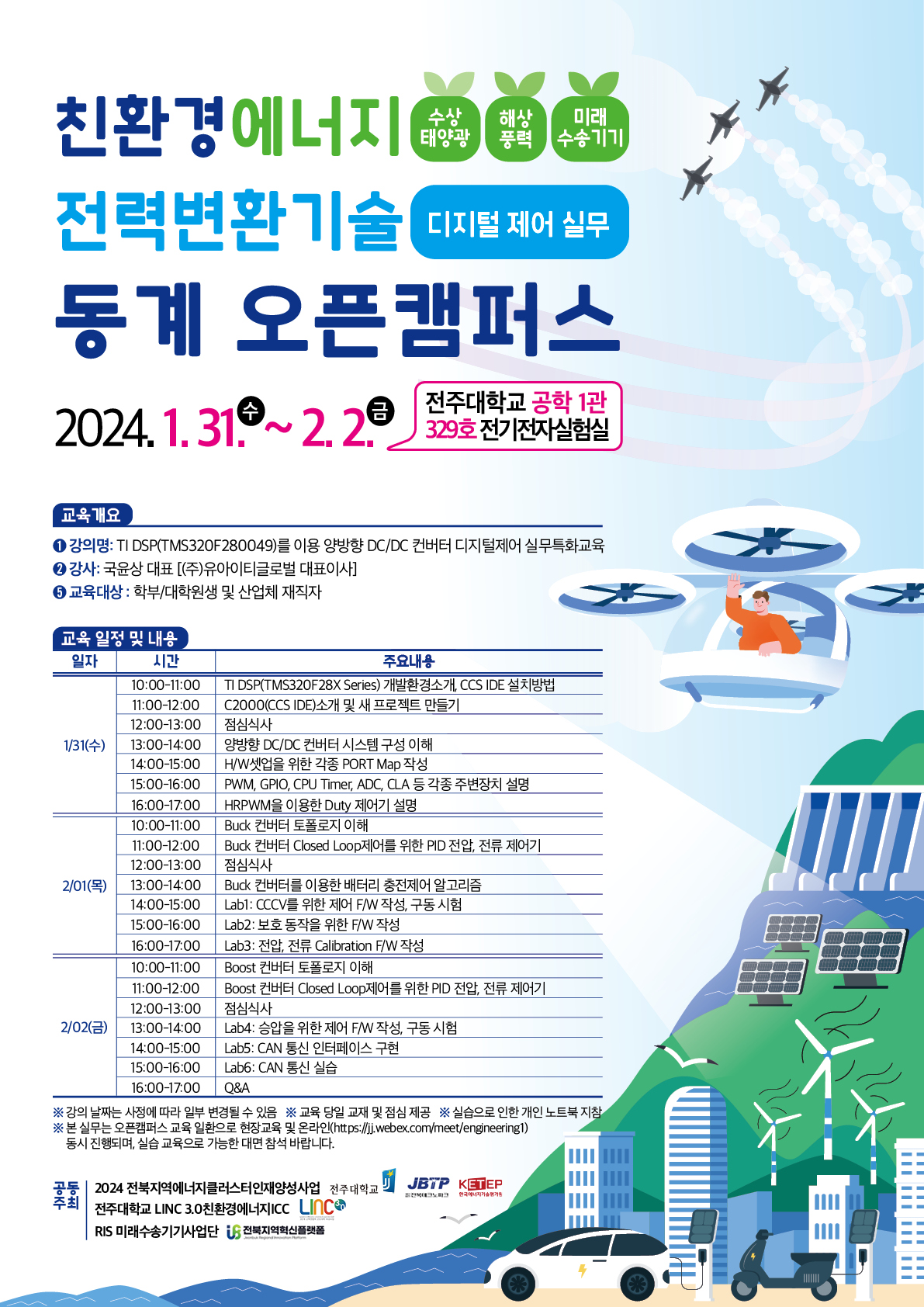 - 교육명: TI DSP(TMS320F280049)를 이용 양방향 DC/DC 컨버터 디지털제어 실무특화교육